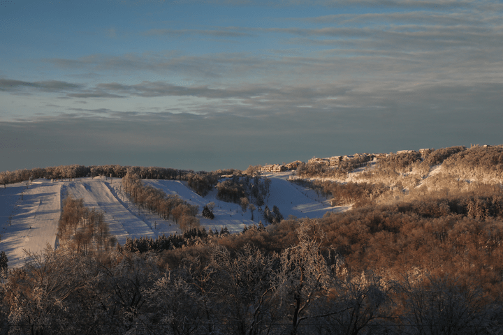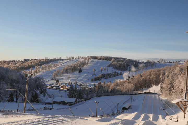 Thirty-three slopes and trails, a 750 foot maximum vertical drop, which is continuous on three trails in the North Face area, are spread across 285 acres. Five triples, three quads, and two high-speed six-pack provide most of the uplift; five surface lifts serve the beginner terrain. Nearly all the terrain is lit at night. Terrain parks and several glades complement more traditional terrain, and the resort is home to the region’s largest snow tubing park!